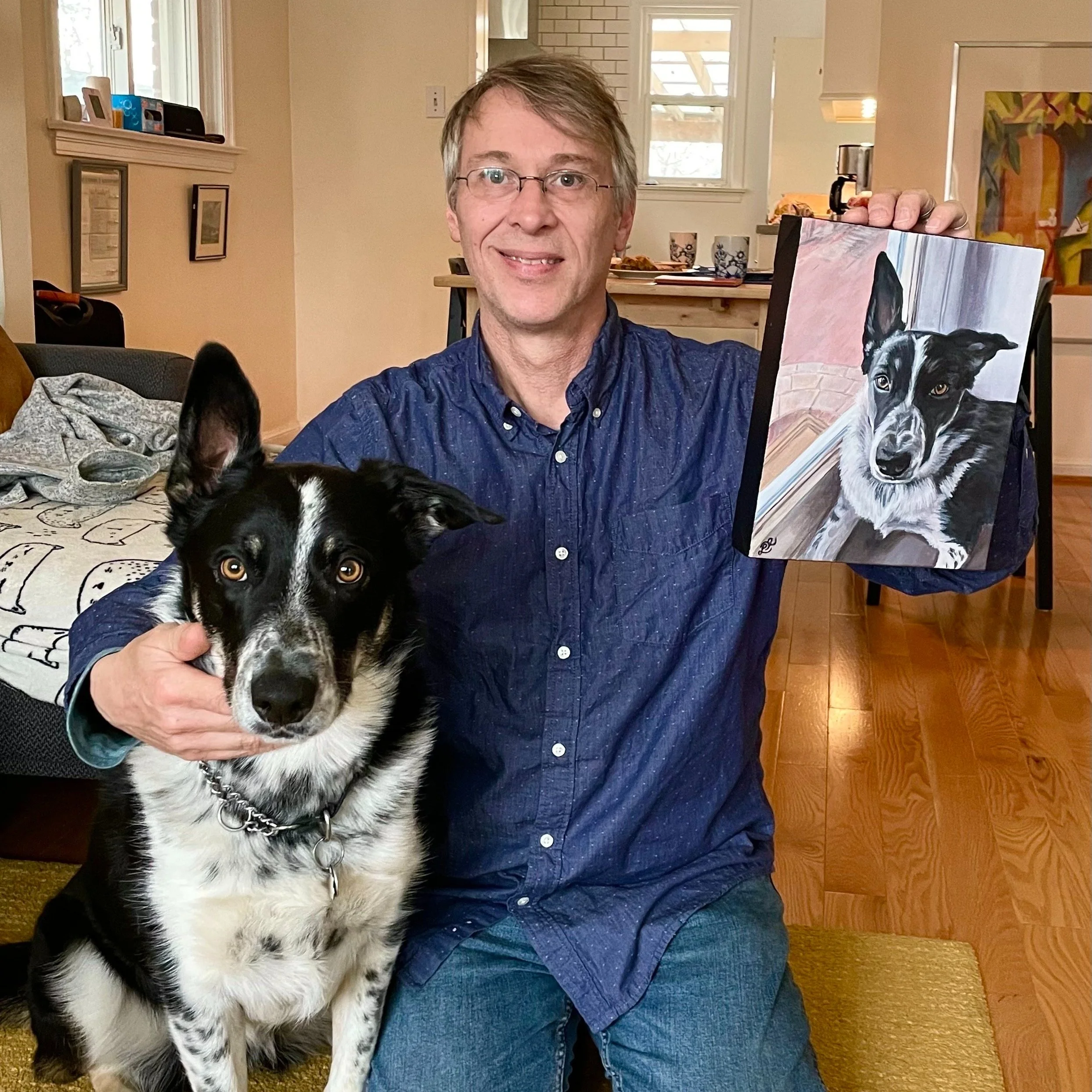 I'd be delighted to help you bring that special moment or companion to life through art.